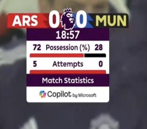 阿森纳vs曼联前19分钟数据:控球率72%28%,射门50