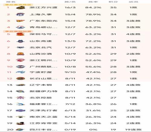 CBA最新积分榜