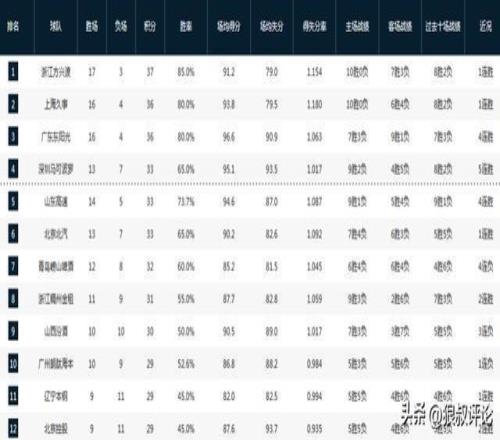 CBA最新排名:广厦捍卫领头羊两大黑马战绩狂飙四川20连败惹争议