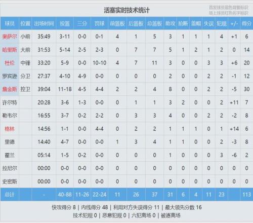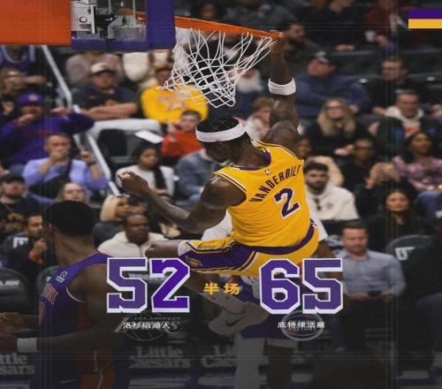上半场打完,活塞65-52领先湖人13分。杜伦表现平平,拿到10分5篮板2失误。活塞三分球14中7,湖人只有16中3。易边再战,詹姆斯连得5分。湖人找回外线手感,单节三分8中5。短短5分多钟,湖人轰出20-6不断迫近分差。