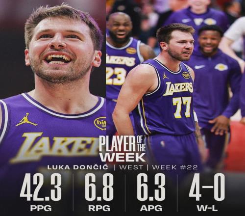 北京时间3月24日,NBA常规赛:活塞主场vs湖人。东契奇第16个技犯被撤销,本场能够出战。此外,今天赛前NBA官方宣布:东契奇和三球当选周最佳球员。东契奇上周场均砍下42.3分6.8篮板6.3助攻,率领湖人取得4胜0负。